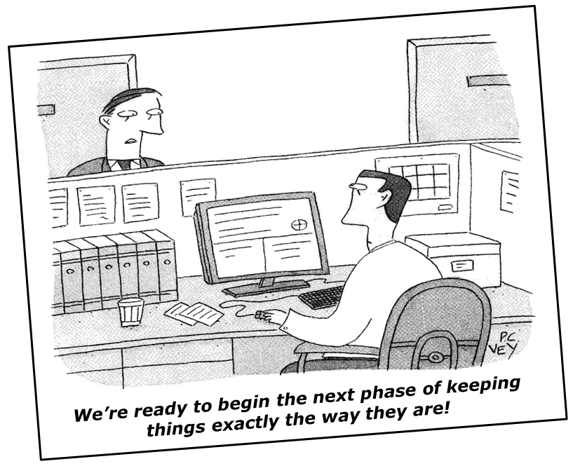 Jeg spurgte forsamlingen hvor mange, der havde erfaring med agile projekter. Én rakte hånden op. Jeg, metodepragmatikeren, havde altså vovet mig ind i en ultra-traditionel forsamling. Og de reagerede præcis som sådan. Selvom de netop havde bekræftet, at forsinkelser og meget fordyrede projekter var dagens orden i deres branche, så lå det bestemt ikke i kortene, at overveje at prøve noget nyt. Det fik mig til at tænke på disse 2 ting:
